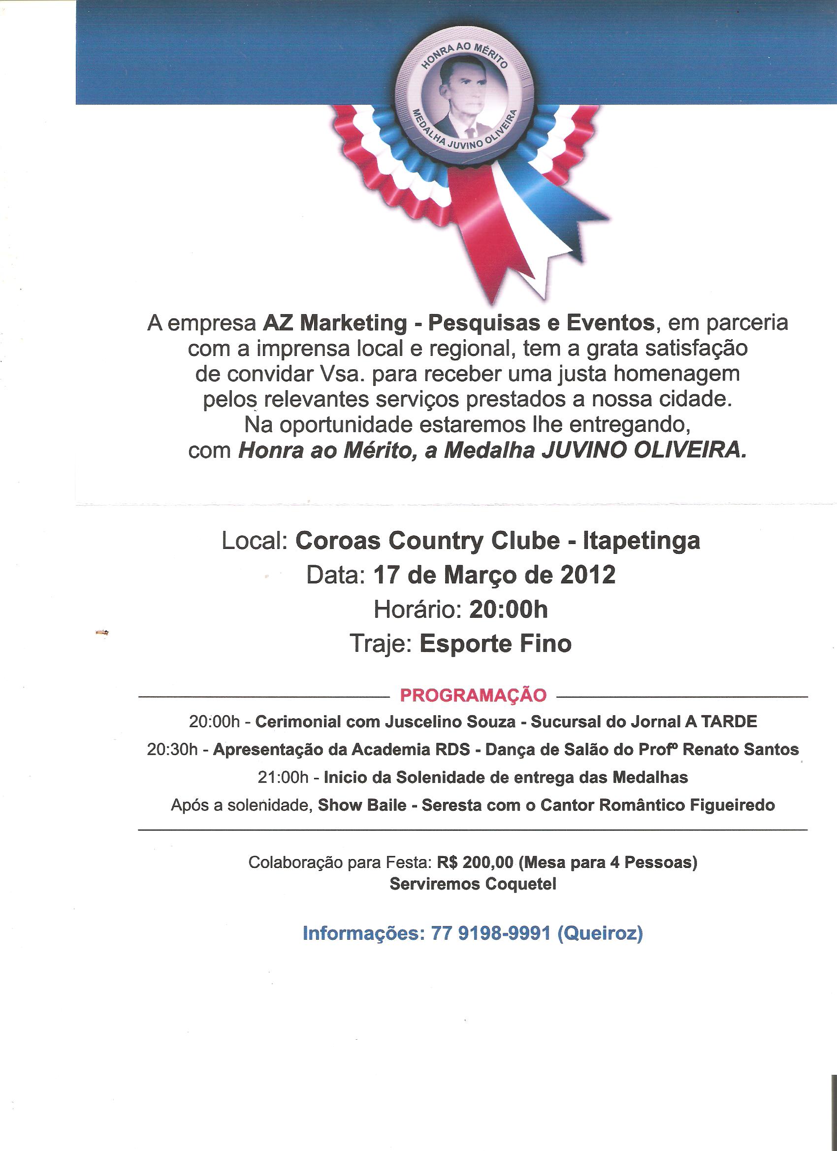 JÁ ESTÁ TUDO PRONTO PARA A ENTREGA DA MEDALHA JUVINO OLIVEIRA. O CANTOR FIGUEREDO SERÁ A ATRAÇÃO MUSICAL DA NOITE. SABADO DIA 17 D MARÇO NO COROAS COUNTRY CLUBE .